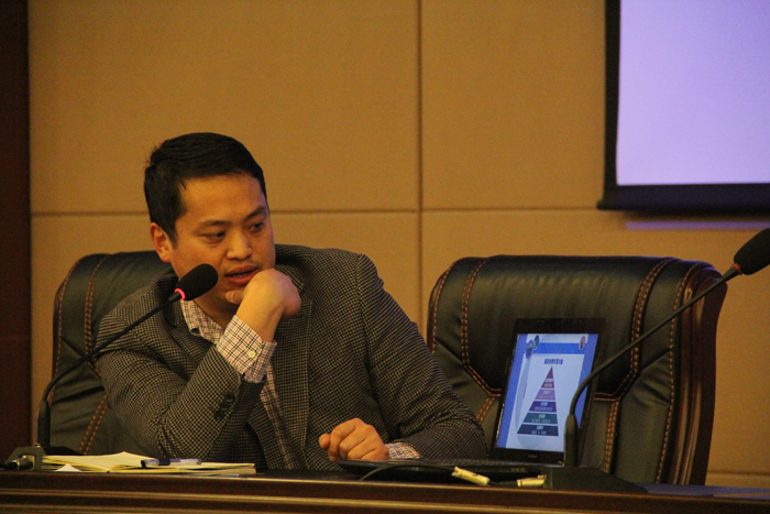 郑伟老师多年从事大学生思想政治教育工作,对学生干部能力的提升和强化有着独到的见解。他以一个充满趣味的《爱丽丝与猫》的故事为开场,告诫同学们“不管处于人生什么样的路口,都要明确自己的目标。”意义深刻,引发现场思考。随后,他向同学们展示了著名的马斯洛金字塔理论,结合实际,现场提出问题“大家为何而来要去向何处?”并邀请同学们回答。在研究了回答后,他向同学们列举了工作和学习时会遇到的七大障碍,包括“思考局限,归罪于外,小富既安,明争暗斗”等,他认为这些障碍是我们完善自我,实现自我道路上的绊脚石,必须予以克服,随之引出了相应的需要注重学习的五项修炼,一是注重自我超越,二要改善心智、让心智日趋成熟,三是建立共同愿景,四要开展团体学习,五要进行系统思考。一系列精彩的讲解为同学们拨开了前进中的迷雾,更让同学们了解了自身不足与面临的挑战。