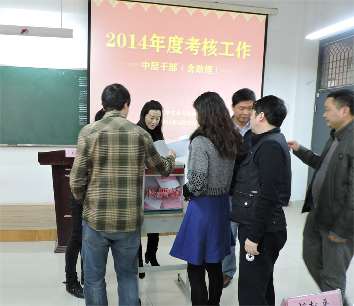 在随后的述职报告中,来自学院综合办、基建部、教务与学生部、财务部和监察审计处中层干部依次上台发表述职述廉讲话。讲话通过文档演示的形式,各自汇报了2014年度完成的主要工作,细致总结2014年取得的成绩,畅谈了工作体会,分析了自身存在的问题和不足,规划了今后工作的努力方向。随后,与会人员以无记名分类投票的方式认真填写了考核测评意见。