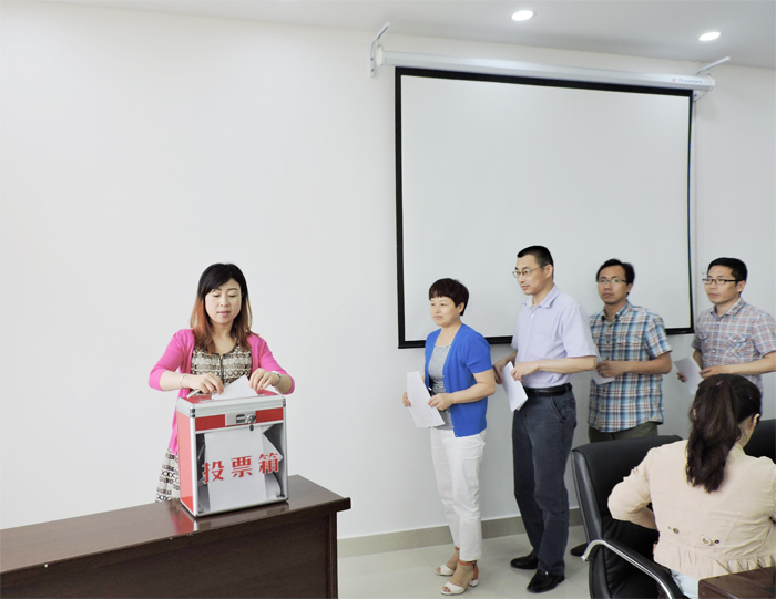 与会人员以无记名投票方式对学院落实“两个责任”和惩防体系建设情况进行了考核测评和民主评议。