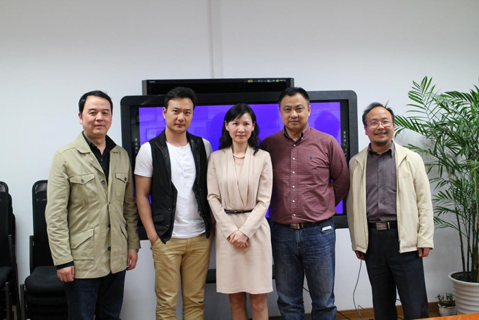 王琍琍(中一)与主持人大赛预赛其他评委合影