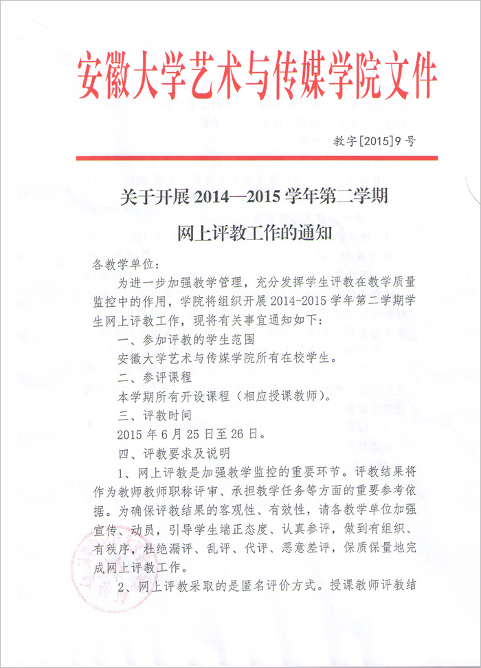 附件:安徽大学艺术与传媒学院2014—2015学年第二学期网上评教安排表.doc
