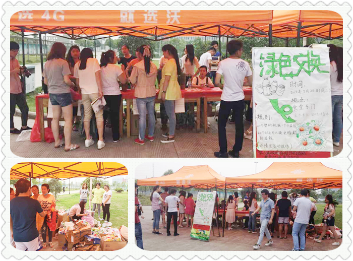 在活动现场,志愿者们准备了绿萝,玉树,凤尾竹和一帆风顺四类盆栽,活动规定分别用20、30、40以及50个塑料瓶来兑换以上四种盆栽。许多同学从寝室将塑料瓶带到活动现场,现场人员数好并登记后,将盆栽送入同学们手中。活动期间,同学们还在宣传条幅上签名,呼吁更多的同学提高环保意识,共建美丽无污染校园。