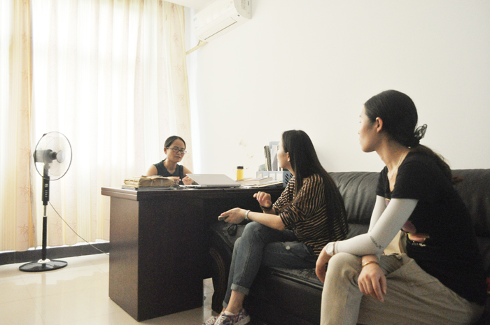一到南屏村,安排好住宿后,服务团成员们顾不上休息,立即进入了工作状态。她们首先和发起关爱留守儿童倡议的南屏村“大学生村官”张昱就志愿服务项目进行了对接,紧接着两位老师赶赴碧阳镇政府,和分管宣传的余主席会面并就深入开展文化共享、文明共建工作进行了商讨。