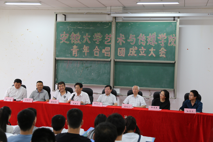 9月25日下午,安徽大学艺术与传媒学院青年合唱团成立大会在学院第二阶梯教室举行。安徽省合唱协会主席徐俊松,安徽省合唱协会顾问陈礼琯,安徽省音乐家协会副秘书长徐海燕,学院党委书记、院长周之虎,学院党委副书记沈端良,学生处处长刘长华,音乐舞蹈系副主任孙来法出席了成立大会,成立大会由院团委书记陈明主持。