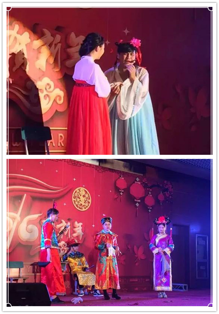 联欢会在黑曜乐队精彩的歌曲中拉开帷幕。小品《东厢记》演绎了不一样的张生与崔莺莺的爱情故事;相声《天赐良缘》幽默诙谐;魔术表演奇幻莫测;话剧《青春》意指大学生学习生活,短小精悍、意味深长;荧光舞《fantastic baby》将荧光与舞蹈有机结合,绚丽的视觉冲击,给大家奉献了完美的视觉大餐;《汉服展示》不仅带来了视觉享受,也让大家学习了中华民族的传统文化;《书画表演》集书法、绘画于一体,配以筝的优美旋律,展示了生动的课堂瞬间。联欢会节目形式多样、精彩纷呈,现场气氛活跃。