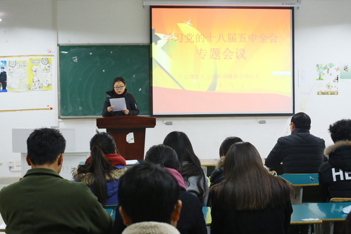 根据《学院学习贯彻党的十八届五中全会精神工作方案》安排,12月22日中午,新闻播音系团总支召开专题会议,学习党的十八届五中全会精神。团总支学生副书记王超、学习委员金春妮、组织委员朱家明分别带领大家学习了十八届五中全会精神、习近平关于共青团的工作精神和《中国共产主义青年团章程》。