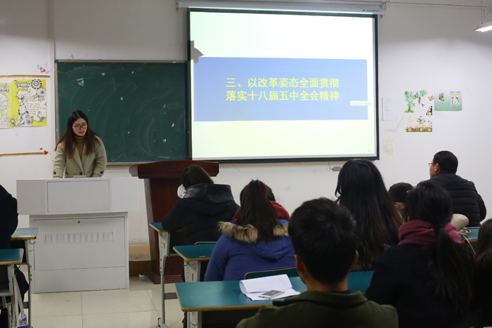 刘涛老师最后总结时说,各班级团支部一定要认真学习党的十八届五中全会精神,牢记共青团宗旨,脚踏实地,从身边做起,从小事做起,起到模范带头作用,积极参加团总支开展的各项活动。他也对近期的工作安排做了安排。