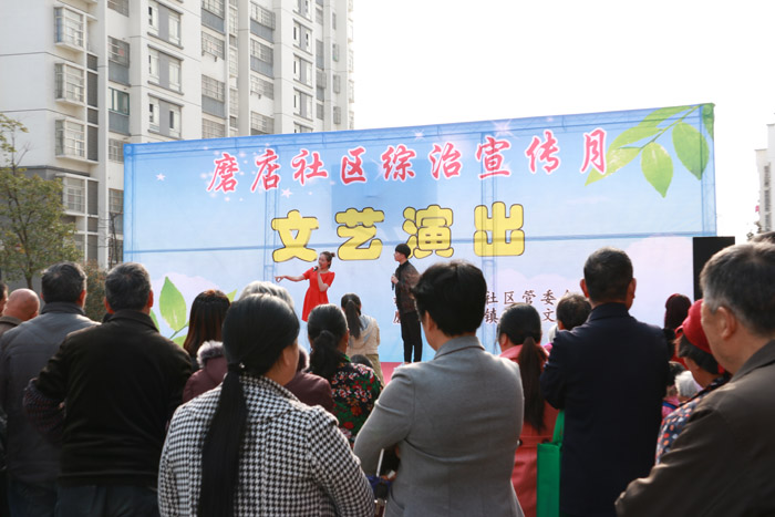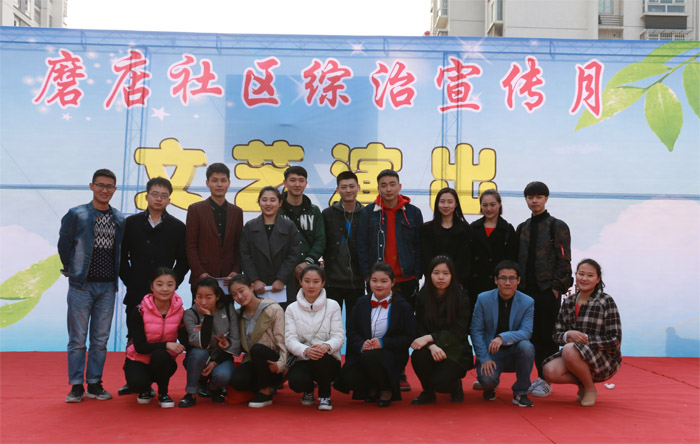 每年的3月是全国综治宣传月,3月24日下午,为了积极践行社会主义核心价值观,弘扬社会主义法制精神,帮助磨店社区面向辖区群众有效进行综治宣传教育,作为我院“增强社会责任感,践行核心价值观”主题教育实践活动中“文艺志愿服务江淮行”系列活动之一,院团委在磨店社区少荃家园生活广场举办了“综治宣传”专场文艺演出。