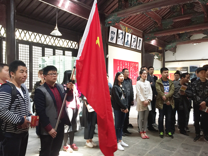 为了激励广大新发展党员坚定信仰,牢记宗旨,牢固树立全心全意为人民服务,为党和人民事业奋斗终身的信念,4月1日上午,由学院组织人事处牵头,各党支部负责人带队,率领2015年度新发展的教师、学生党员前往肥东县瑶岗村,参观渡江战役总前委旧址纪念馆,并举行新发展党员入党宣誓仪式。