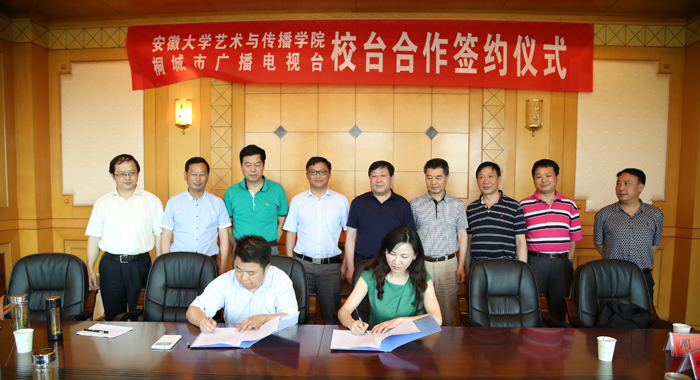 6月17日下午,我院与桐城广播电视台“校台合作签约仪式”在桐城市举行。院党委书记、院长周之虎,副院长张晶等院系领导,桐城市副市长张支南、桐城广播电视台台长吴茂松等出席了签约仪式。
