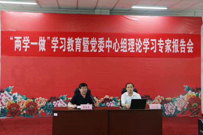 6月21日下午,我院在第二阶梯教室举办“两学一做”学习教育暨党委中心组理论学习专家报告会。会议邀请安徽省委党校科学社会主义教研部主任汪兴福教授为我院全体师生党员作了《抓实“两学一做”,闯出崛起新路》的主题报告。报告会由学院党委书记、院长周之虎主持。学院全体师生党员出席会议。
