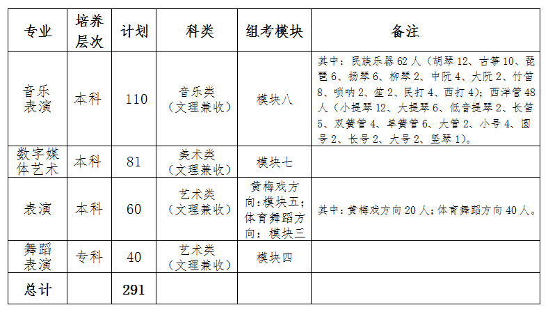 2.组考模块三对应的专业按综合分1投档录取。即综合分1=专业成绩/专业满分*300+文化成绩/文化满分*700(专业成绩、文化成绩达到安徽省划定相应批次分数线)。
