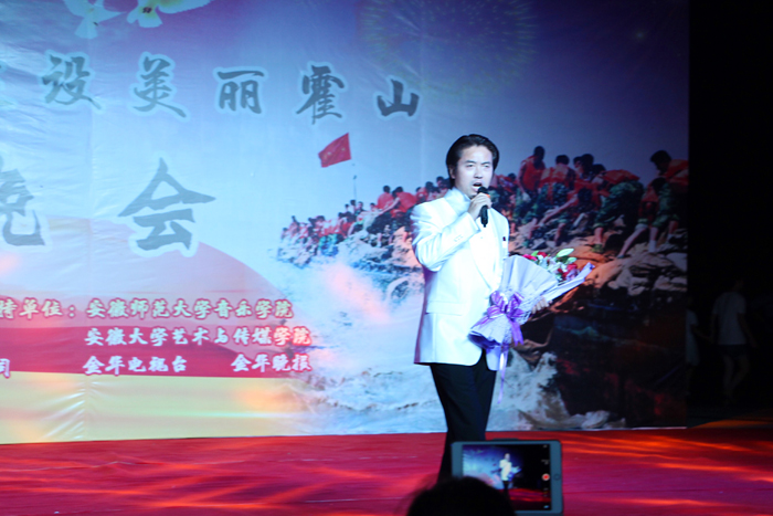 8月12日,由中共霍山县委宣传部、霍山县文广新局主办的“弘扬抗洪精神,建设美丽霍山”专场文艺晚会在该县红源广场隆重举办。我院音乐舞蹈系孙来法教授、李传兴副教授应中共霍山县委宣传部邀请回乡参加了义演。中共霍山县委常委、宣传部长曹君出席活动并发表热情洋溢的讲话。