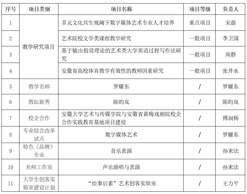 安徽大学艺术与传媒学院2016年省级质量项目评审结果