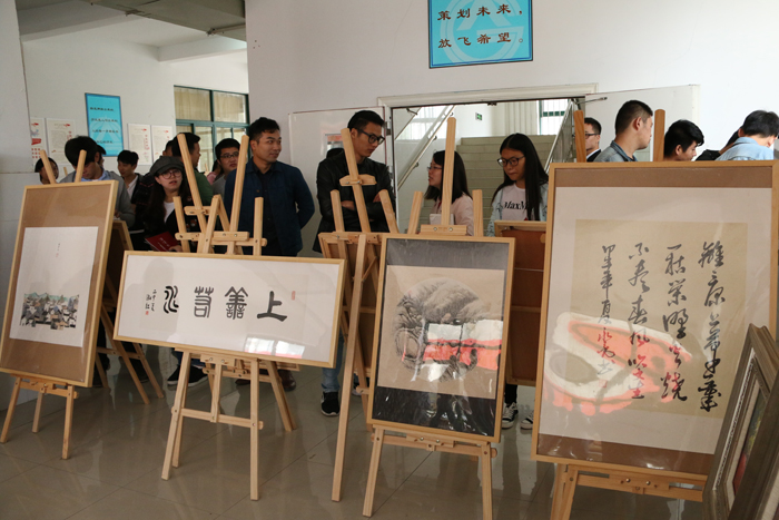 本次共展出绘画书法类作品40余幅,以讴歌时代风貌、描绘中华民族伟大复兴为主旨,形式包含国画、油画、漆画、版画、书法、素描等,题材涵盖风景、人物、花鸟、山水、时事热点等各方面。书法作品则以弘扬中华传统美德,时代精神、民族精神的诗文为主。每一幅作品都体现了作者对艺术的热爱与追求,彰显了其对生命的体悟与感动。以书画形式讴歌中国共产党和伟大祖国,践行社会主义核心价值观是每一位教育工作者义不容辞的职责。以笔墨寄情、以书画言志,更加激励我们‘不忘初心、继续前进’,践行“两学一做”,凝聚正能量,实现中国梦。” (文/赵晨)