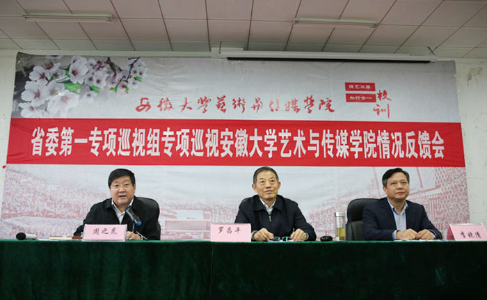 按照省委巡视工作领导小组的部署,10月25日下午,省委第一专项巡视组组长罗昌平代表巡视组向安徽大学艺术与传媒学院反馈专项巡视情况,学院党委书记周之虎主持会议并作表态发言。