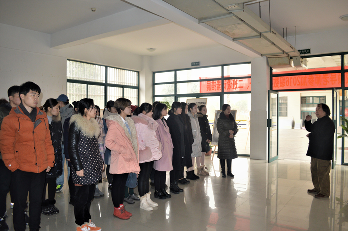 开幕式结束后,美术设计系党总支书记、副主任罗耀东,党总支副书记张丽丽在展览作品作者的引导下观看并指导了画作。最后院团委书记陈明强调要在扎实基本功的同时注重创新,为学院的未来添砖加瓦。(文/陆皖晶)