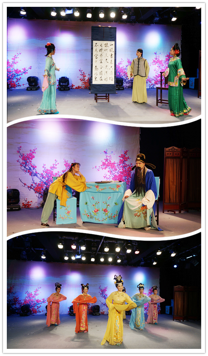 此次汇报的演出节目有传统戏《打猪草》《孟姜女》、现代戏《江姐》以及新编戏《六尺巷》等剧目。同学们以其优美的身段动作、风趣的舞台表演和声情并茂的唱腔,充分展现了他们入学以来的可喜收获,并赢得了台下热烈的掌声。同时,本次演出也特别感谢安徽省黄梅戏剧院蒋建国院长在服装、化妆、道具等方面的大力支持。