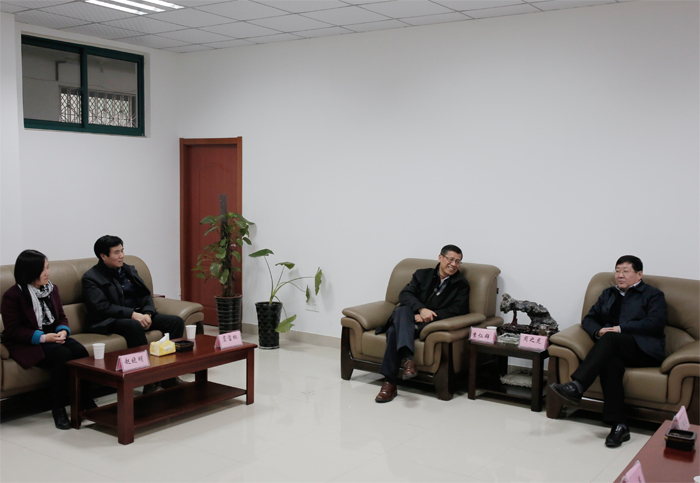 1月18日下午,安徽大学党委书记李仁群、副校长虞宝桃在组织部副部长赵晓明的陪同下,到我院看望慰问在我院挂职的党委副书记沈端良,副院长张晶。学院党委书记、院长周之虎热情接待了李仁群一行。