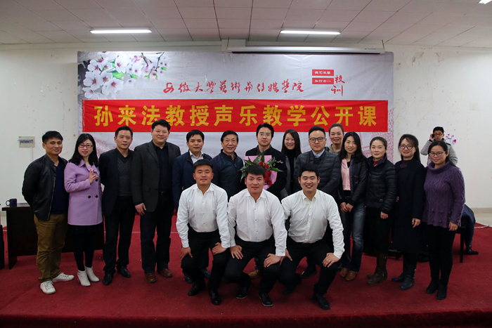 3月10日上午,我院“孙来法教授声乐公开课”在第三阶梯教室成功举办。学院副院长张晶教授和职能部门及系部师生近200余人现场观摩,教务处、科研处处长韩大国教授主持此次公开课。