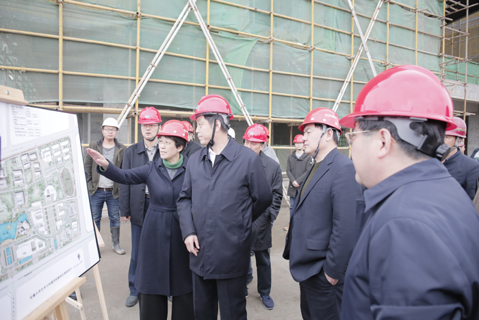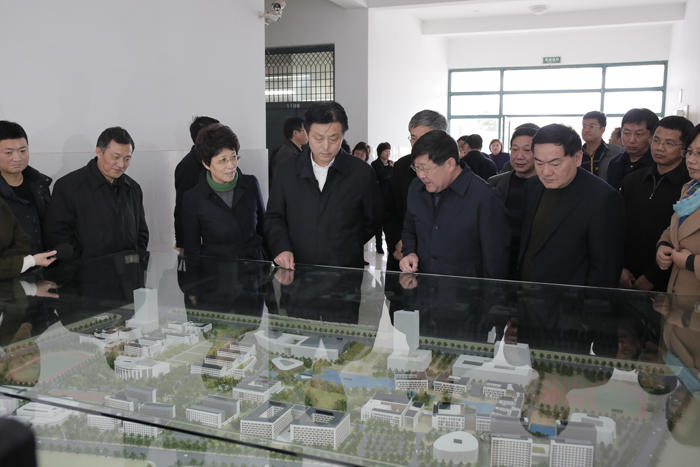 调研汇报会前,谢广祥一行查看了新校区建设沙盘,并实地考察了新校区建设工地。