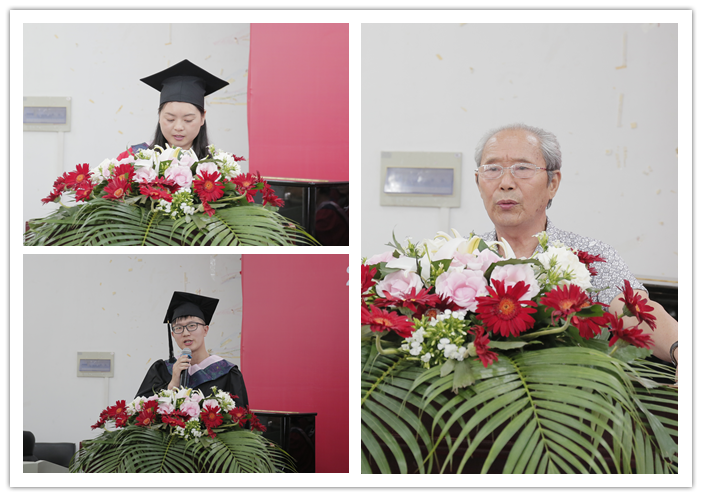 新闻播音系王莉老师代表教师向毕业生致贺词,向即将告别母校、踏上新的人生征途的毕业生们表示祝贺,希望各位毕业生坚守信念,学以致用,踏实成就事业。毕业生代表美术设计系视觉传达设计专业杨成林表达了对学院、对老师的感激与不舍,并表示将在今后的工作中,要坚持“知行合一、德艺双馨”,将母校精神发扬光大。戏剧影视系戏剧影视导演专业吴愿同学的家长吴再起代表家长发言,他向学院及教师对孩子的培养表示了感谢,并祝福所有的毕业生心想事成、鹏程万里。