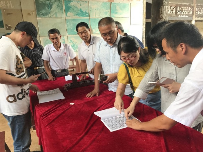 8月25日上午,因道路维修,调研组沿着蜿蜒的山道,驱车三个小时,来到五河镇河南村,参观考察首批国家级非物质文化遗产——岳西高腔最具代表性的剧社——聚合堂剧社。岳西高腔传承中心王翰林、聚合堂剧社社长蒋卫东热情接待了调研组。在蒋氏宗祠老戏台,岳西高腔传承人现场演绎了一幕戏。演出结束,调研组与老艺术家们就唱腔唱法、剧目曲谱、人才培养、传承创新等问题,进行了热烈交流。下午,调研组来到岳西天鹅集团,实地探访天鹅职业培训学校实训车间,了解了民营企业在革命老区脱贫攻坚中的责任担当。