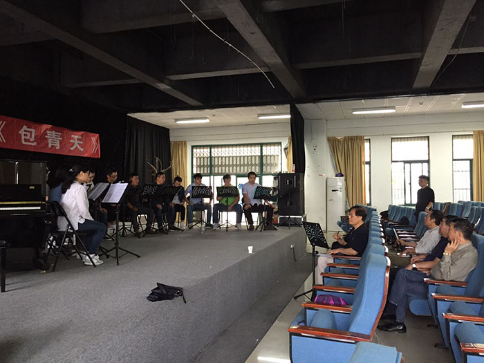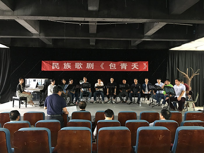 9月25日上午,学院党委书记、院长周之虎,副院长张晶,在教务处、科研处处长韩大国的陪同下,到民族歌剧《包青天》剧组指导工作并慰问排练演职人员。
