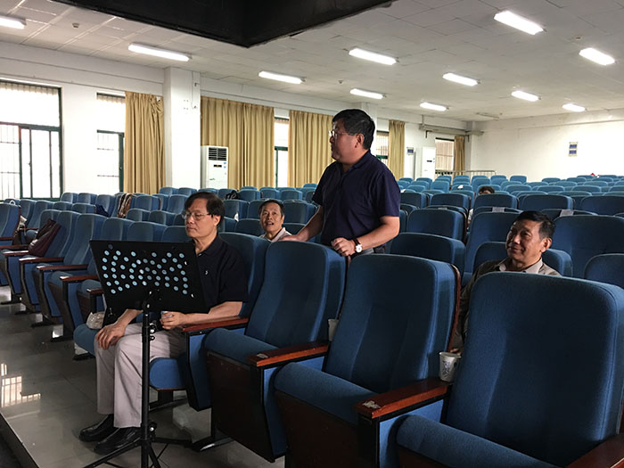 周之虎一行进入排练厅后,没有影响歌剧的排练,轻声地到观众席就座。在排练间隙,周之虎作重要讲话。他说,孙来法教授主持的“安徽省声乐表演与教学人才团队”成功入选“2016年高校领军人才团队引进资助项目”,省财政划拨专项建设经费为150万。为了高水准、高质量的完成项目,学院高度重视,专门成立领导小组,组织专家专题研讨项目建设的载体,最终确定打造一部以包拯为题材、具有安徽文化特征的原创民族歌剧。剧本创作从《清风颂》到《赤桑》再至定稿《包青天》,经过了多轮研讨、反复推敲。最后与我国著名作曲家、剧作家莫凡先生的成功合作是项目的重大转折,也为项目的顺利推进奠定了坚实的基础。莫凡先生对创作包拯题材的歌剧有着高度的认同和强烈的热忱,经过交流我们一致认为,千百年来,包拯是铁面无私的化身、清正廉明的典范,是我国古代廉政文化的杰出代表,被誉为“包青天”,为官者以“包青天”为楷模,人民大众则企盼为官者都是“包青天”,所以最终确定莫凡先生担当剧本和音乐的创作,同时邀请到我国著名导演廖向红教授作为项目的总导演。在此,感谢莫凡先生和廖向红教授的积极支持与倾心打造,对他们的敬业精神深表敬意。同时要感谢曹玉萍教授、周爱宝教授等省内专家学者和所有参与歌剧《包青天》项目的院内外演职人员,希望大家在莫凡老师等专家的指导下,圆满完成各项排演任务。