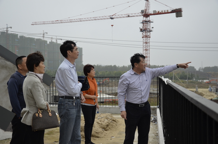 鲍习生、孙荣春听取了学院总体规划情况介绍,实地查看了新校区建设工作。