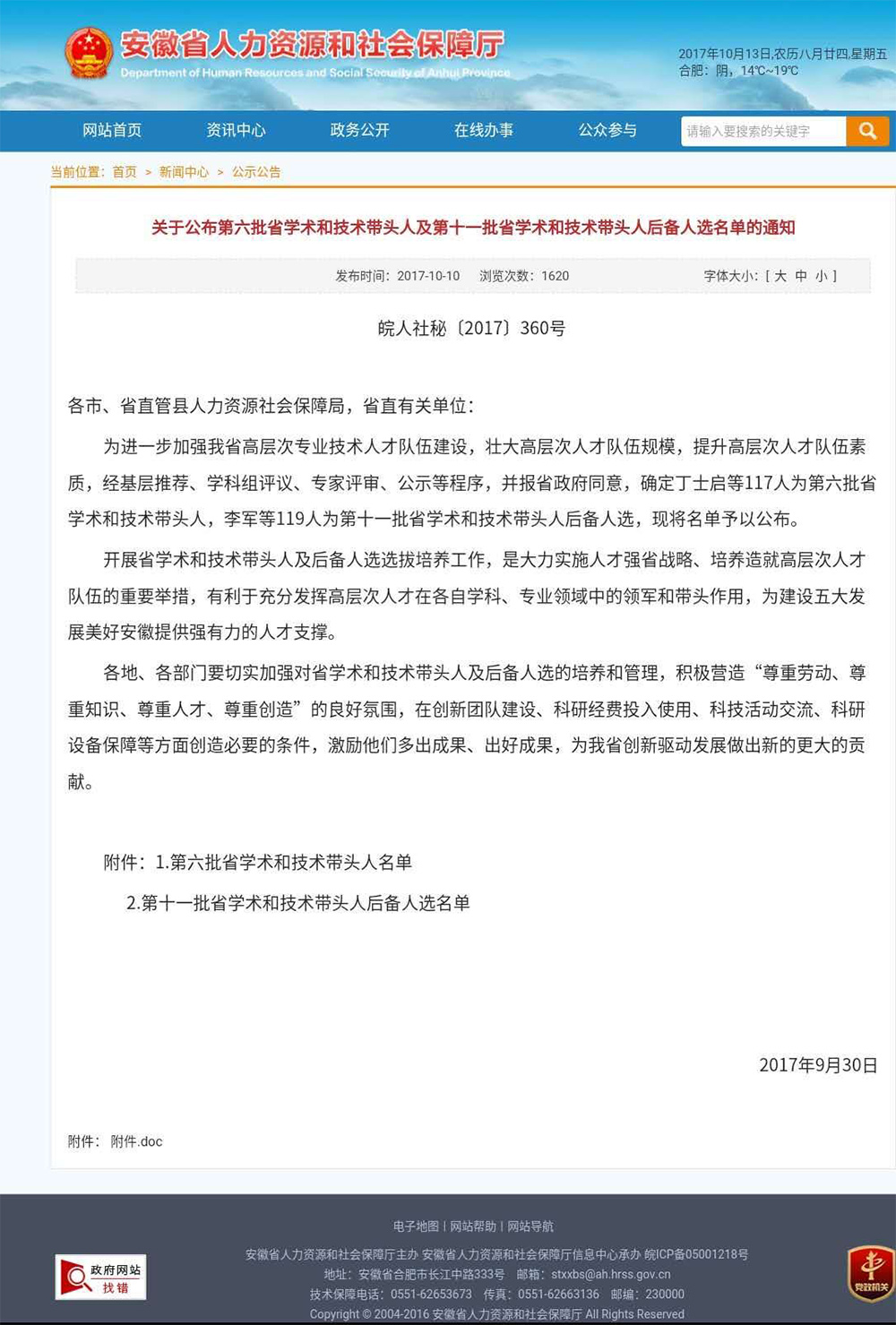 9月30,省人社厅《关于公布第六批省学术和技术带头人及第十一批省学术和技术带头人后备人选名单的通知》(皖人社秘〔2017〕360号)公布了安徽省第六批省学术和技术带头人及第十一批省学术和技术带头人后备人选名单。我院音乐舞蹈系主任孙来法教授入选省学术和技术带头人,戏剧影视系副主任李伟教授入选省学术和技术带头人后备人选。