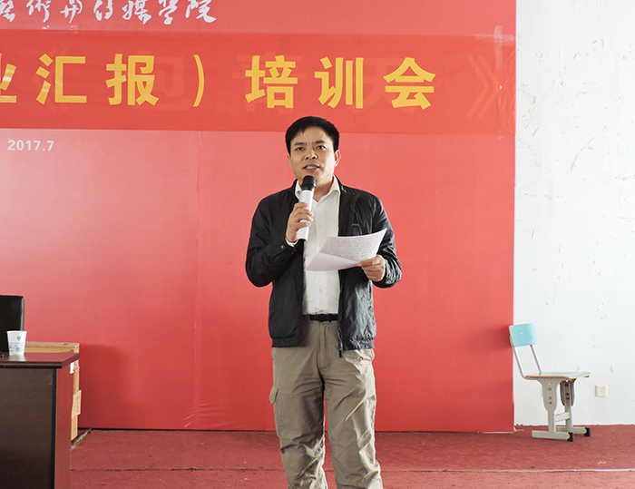 为落实“关于开展第三届青年教师教学基本功竞赛系列活动的通知”要求,加强赛前培训,提升专业教师把握专业的能力,学院特邀合肥学院工业设计专业带头人闫朝华教授于2017年10月27日(周五)下午2:00,在一教二楼第三阶梯教室就如何说专业进行培训。学院全体教师参加了此次培训活动。活动由教务处韩大国处长主持。