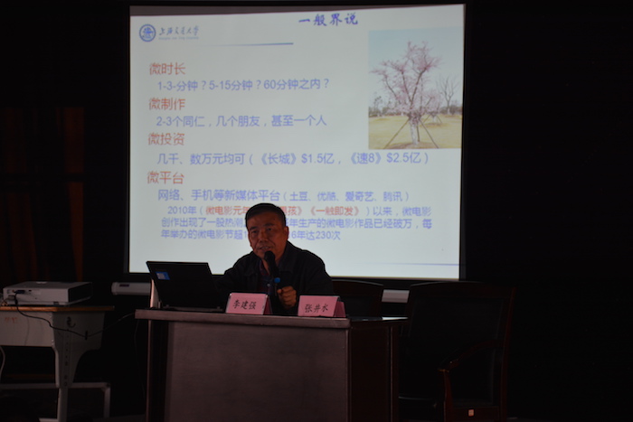 讲座在大学生活动中心举行,由系主任助理张井水主持。讲座中,李建强详细为大家解读了微电影“微时长、微制作、微投资、微平台”的“四微”特征,强调微电影内在生命仍然是“电影”和“艺术”。从美学层面深刻剖析了微电影“微、反、巧、活、藏”的特点。指出未来微电影发展一定要“求精”、“求新”,要具有工匠精神。大学生微电影的创作中,要创意内容先行,内容为王;要突出互动特点,紧贴地气;要注重品牌发展,个性发展。勉励大家敢于创作、勇于实践。
