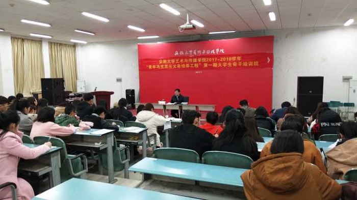 11月23日下午,学院2017-2018学年“青年马克思主义者培养工程”第一期大学生骨干培训班第二次培训在一号教学楼二楼阶梯教室进行。学院党委书记、院长周之虎教授作党的十九大精神专题宣讲辅导报告,各系团总支书记和120余名院系学生骨干参加了学习。