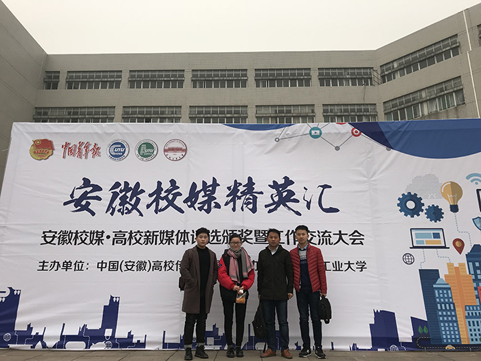 用心灵话筒,采访人生;用智慧笔端,刻画生命。12月30日,安徽省首届校媒精英汇在合肥工业大学图书馆报告厅举行。安徽省团省委副书记李跃波,中国青年报编委、社评部主任、首席评论员曹林,中国青年报安徽记者站站长王磊出席大会。受组委会的邀请,我院新闻播音系树冠工作室主要成员汪博、邓杰彬、郑颖等三位同学,在指导老师周正带领下参加了此次活动。