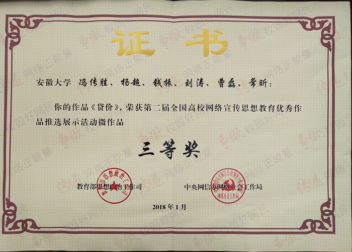 近日,学院原创法治微电影《贷·价》荣获教育部第二届“高校网络宣传思想教育优秀作品推选展示”三等奖。这是继入围第二届“平安中国”微电影比赛(中央政法委、中央综治委主办)、第三届中国大学生微电影创作大赛(共青团中央学校部、中央新影集团、中国传媒大学、即墨市人民政府联合主办)两项赛事后,首次成功获得教育部大赛奖项。