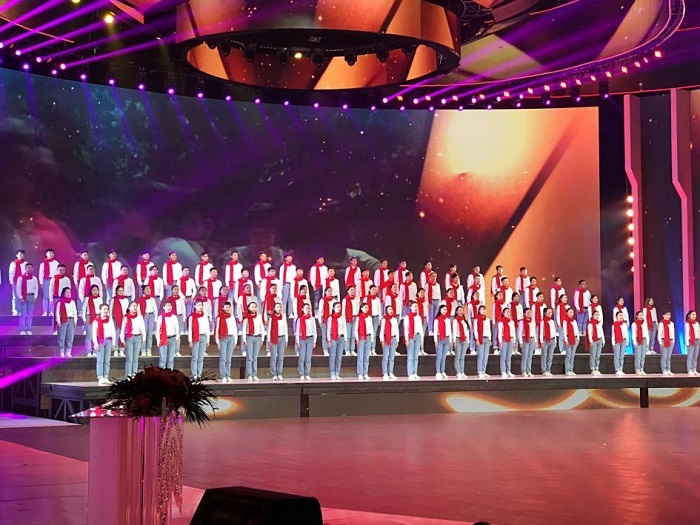 “今日片片绿叶衬,明朝鲜花朵朵红。”1月28日晚,2018年安徽卫视春节联欢晚会在安徽广播电视台3600平方米演播大厅录制,学院青年合唱团受邀参加节目录制,参与表演歌曲联唱《歌声飘过四十年》,先后演唱并表演了《年轻的朋友们来相会》《在希望的田野上》《东方之珠》《站起来》《国家》等五首歌曲。七十余名同学朝气蓬勃、青春洋溢,统一身着白衬衫、蓝牛仔、白球鞋、红围巾,优美的旋律从心底流出,和谐的歌声在演播厅回荡,表达江淮儿女对改革开放四十年以来所取得的成就由衷地赞美。