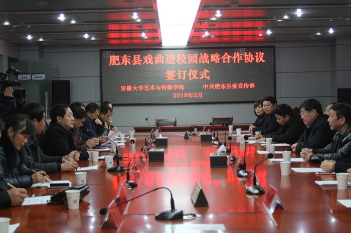 2月7日下午,学院与肥东县委宣传部“戏曲进校园”战略合作协议 签字仪式在肥东县广播电视大厦举行。学院党委书记、院长周之虎在副院长张晶及相关部门负责人的陪同下出席。肥东县委常委、宣传部部长许高彬以及相关单位负责人参加签约仪式。