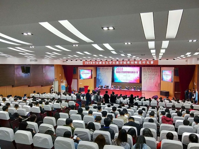 4月14日至15日, 2018年安徽省数字媒体创新设计赛现场决赛在安徽新闻出版职业技术学院科技楼报告厅馆隆重举行。本次竞赛共有来自全省30余所高校(或校区)的342支队伍报名,经网评专家评议,评出100件作品参加现场决赛,角逐本次大赛的一、二等奖。当天,美术设计系6名指导老师带领21名数字媒体艺术专业学生赴决赛现场进行答辩。美术设计系数字媒体艺术专业学生入选12组作品,涉及Flash交互动画、Unity 3D虚拟场景搭建、app交互设计应用等多个类别。