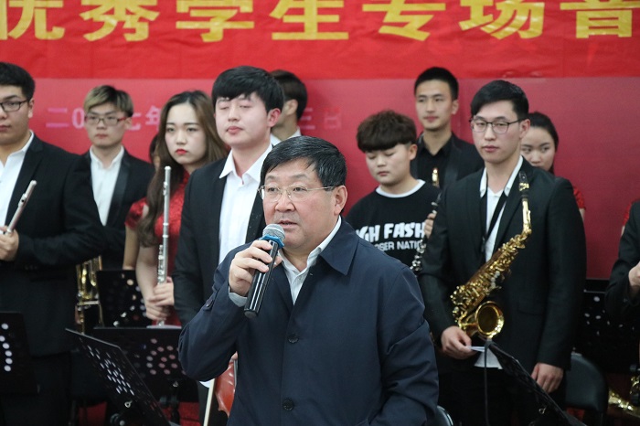 音乐会结束后,学院党委书记、院长周之虎同志发表了重要讲话。他首先肯定了学生们的积极参与和努力付出,能在当前较为困难的硬件条件下举办一场如此规模的音乐会着实不易。并强调我校是应用性本科院校,要培养“登得了台、表得了演”的优秀专业表演人才,为建设“五大发展美好安徽”提供人才保障,服务社会、服务广大人民群众。同时也鞭策各位同学和指导教师在未来的学习和教学中继续努力,不断提高业务水平和教学能力,培养出省内一流,乃至国内一流的应用型人才。