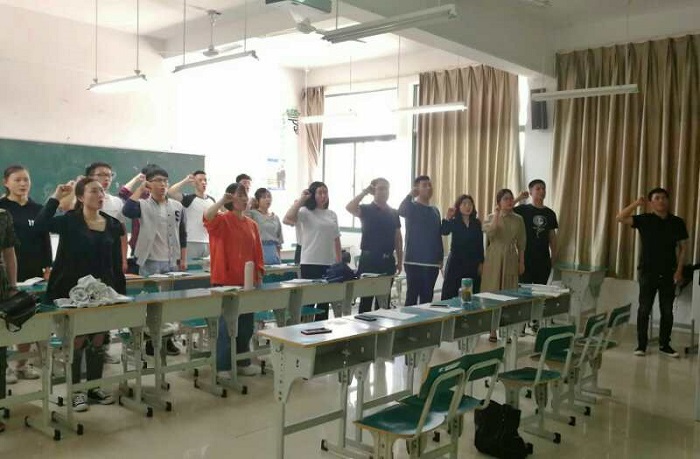 5月9日中午12:30,由新闻播音系组织的2017级学生党员宣誓大会在2教201教室进行,此次会议由新闻播音系学生党支部学生副书记陈威同学主持,新闻播音系学生党支部书记秦帅、副书记杜衎、组织委员陈伟伟、纪检委员康宁以及2017级学生党员、预备党员和入党积极分子参加了宣誓大会。