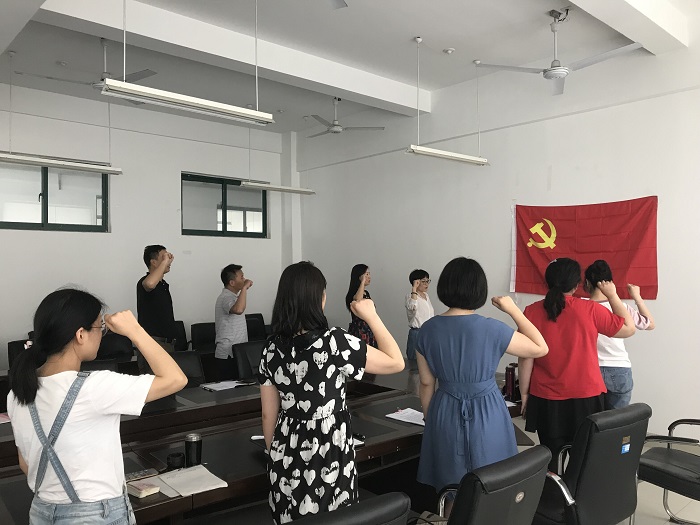 申莹和同志是新闻播音系2016年新进教师。作为预备党员,申老师第一次参加了教工党支部的支部会议,并与全体教工党员一起面对党旗进行了庄严的宣誓。