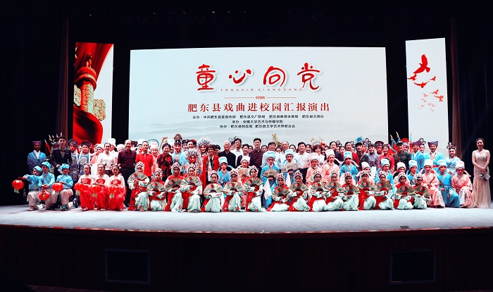 一朵朵戏曲小花蓬勃绽放,一位位戏曲名家闪亮登场,共同演绎一场戏曲文化的盛宴。5月25日,由我院承办,中共肥东县委宣传部、肥东县文广新局、教育体育局、文明办共同主办的“童心向党”肥东县“戏曲进校园”汇报演出在该县丁玉兰庐剧院成功举办。