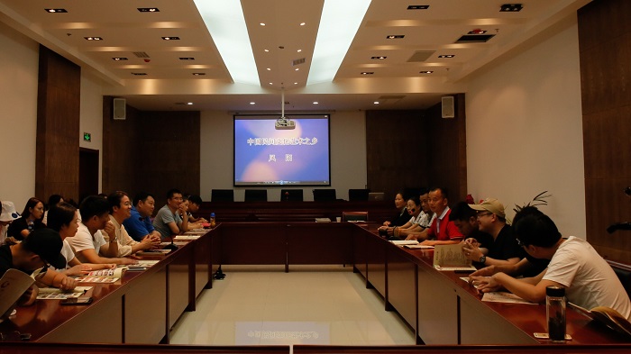 接下来,在凤阳县文化馆报告厅,凤阳凤画省级非遗传承人王金山为大家介绍了凤阳凤画艺术。凤阳花鼓市级非遗传承人熊冠霞为大家介绍花鼓的构造与演奏技巧,并亲自示范技术要点。非遗传承人与我院师生一起面对面座谈、手把手交流,增进了双方的了解,也有利于师生更好地了解和学习这门艺术。