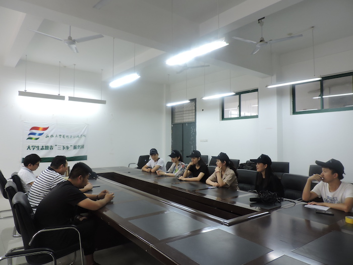 7月5日下午,学院2018年暑期“三下乡”服务团出征仪式在学院1教四楼会议室隆重举行。院团委书记陈明、新闻播音系学生党支部书记秦帅、“三下乡”带队老师孙鑫出席仪式。