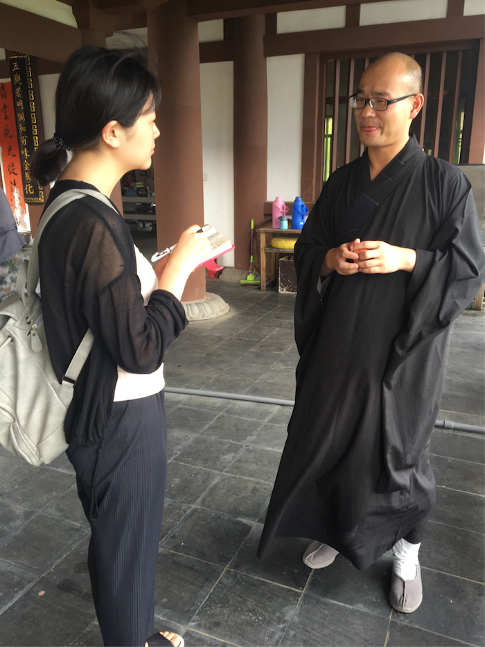 成员们请寺里延博法师讲解二祖寺的历史和现状,还受邀与他们一同感受斋饭,体验他们日常生活。