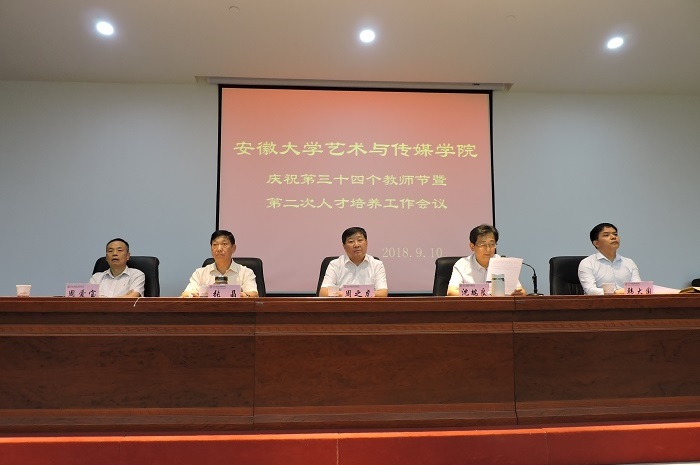 周之虎书记首先代表学院党委、行政向全体教师及广大教职员工致以诚挚的问候和最美好的祝愿!并勉励全体教职员工精诚团结,顽强拼搏,凝心聚力,攻坚克难,敬岗奉献,用健康的身心、饱满的热情、踏实的工作寄心教育,用励精图治拓展学院的未来,在习近平新时代中国特色社会主义思想指导下,争做“四有”好老师,共同书写安徽艺术教育事业新篇章!