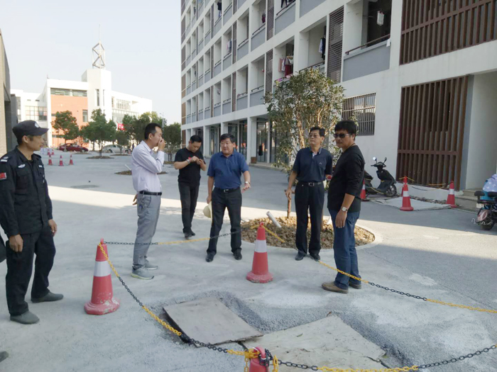 2018年国庆期间,学院领导放弃休息时间,实地督促调研安徽大学艺术与传媒学院校园基本建设。