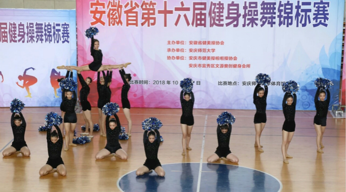10月5日至7日,由安徽省健美操协会主办的安徽省第十六届健身操舞锦标赛在安庆师范大学龙山校区体育馆举行,来自全省大中专院校、中小学校和社会团体共29个代表队近400名运动员参加了8个组别34个项目的角逐。