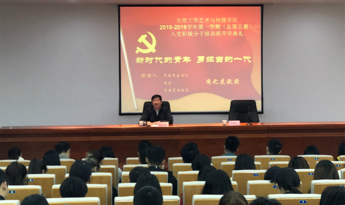 11月9日下午,学院在美术楼学术报告厅举行党校2018-2019学年入党积极分子培训班。学院党委书记、院长、党校校长周之虎教授作首场讲课。培训班由学院组织人事处处长曹晓富主持。